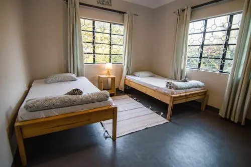 Kahden hengen huone - Twin - Jaettu kylpyhuoneTässä kahden hengen huoneessa on vaatekaappi ja yhteiskäytössä oleva kylpyhuone. Huoneesta on näkymä puutarhaan. Huoneessa on 2 vuodetta.