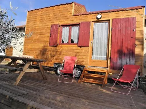 Roulotte Boasting a private entrance, this air-conditioned chalet comes with 1 living room, 2 separate bedrooms and 1 bathroom with a shower. Guests will find a stovetop, a refrigerator, kitchenware and a microwave in the well-fitted kitchenette. The chalet also includes a barbecue. Featuring a terrace with garden views, this chalet also features a tea and coffee maker and a flat-screen TV. The unit has 2 beds.