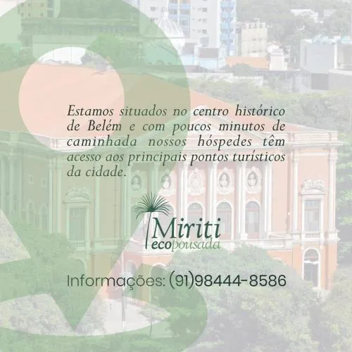 Ecopousada Miritillä on erinomainen ja rauhallinen sijainti Belémissä, ja sitä kiitetään sen saavutettavuudesta historiallisiin kohteisiin, nähtävyyksiin ja mukavuuksiin, kuten Teatro da Paziin ja Tasavallan aukiolle. Majatalon seesteinen ympäristö ja miellyttävä puutarha-alue lisäävät sen rentouttavaa tunnelmaa, mikä tekee siitä edullisen ja kätevän tukikohdan matkailijoille.