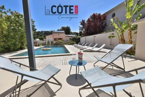grand studio terrasse de standing, pleine vue village et proche mer