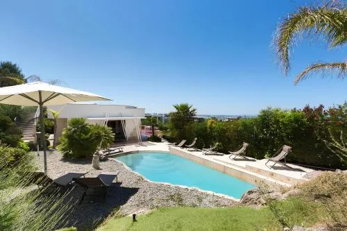 Tässä ylellisessä huvilassa on kaunis yksityinen uima-allas, joka on veistetty kallioon mutkittelevin muotoin. Vieraat voivat nauttia panoraamanäkymistä merelle uima-allasta ympäröiviltä suurilta terasseilta, mikä tarjoaa eksklusiivisen ja maisemallisen uintikokemuksen.