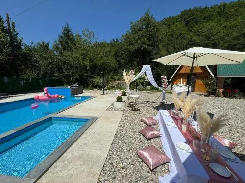 Tässä lomakodissa on oma uima-allas.