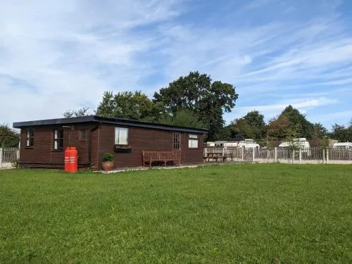 Kyllä, Log cabin with secure garden toivottaa koirat tervetulleiksi.