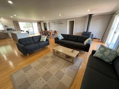 My Island Home sijaitsee rauhallisella 2 hehtaarin tontilla, jota ympäröi pensaikko ja lyhyen kävelymatkan päässä rannasta. Se tarjoaa koirahoitoloita ja runsaasti tilaa koirille juosta. Kiinteistö tarjoaa runsaasti tilaa rentoutumiseen ja viihteeseen.