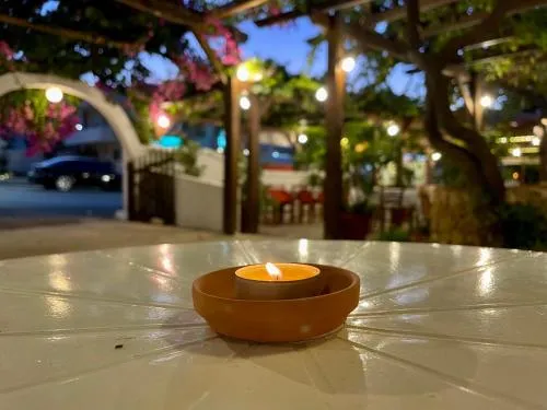 Vain 5 metrin päässä rannalta sijaitsevassa perheomisteisessa hotellissa on perinteinen taverna ja baari.