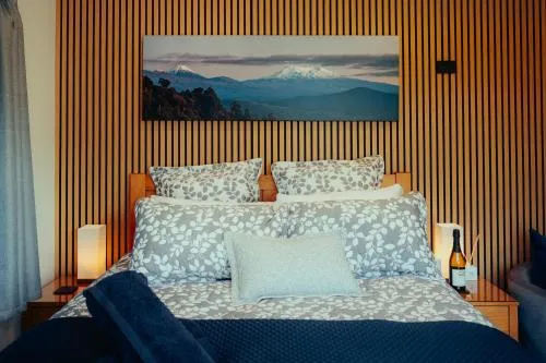 Tämä vain aikuisille tarkoitettu boutique-lodge tarjoaa ylellistä majoitusta upeilla joki- ja vuoristonäkymillä, mukaan lukien Ruapehu-vuori. Vieraat voivat nauttia yksityisistä porealtaista, nopeasta/rajattomasta Wi-Fi-yhteydestä ja ilmaisista suoratoistopalveluista, kuten Netflix, Neon ja Prime. Jokaisessa huoneessa on queen-size-vuode, oma kylpyhuone ja huoneessa olevat aamiaistarvikkeet, ja ne ovat hyvin eristettyjä ja kaksinkertaisella lasituksella varustettuja talvimukavuutta varten.