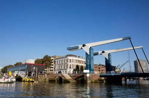 Rento piilopaikka aivan Rotterdamin trendikkäällä vasemmalla rannalla. Entinen tullitoimisto, 1800-luvun ulkokuori kätkee viileän, nykyaikaisen tyylin huoneissa, joissa on paljaat palkit, korkean teknologian musiikkijärjestelmät, selkeät linjat ja samettiverhoilu.