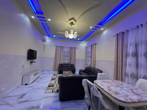 Kolmen makuuhuoneen huoneistoTämän huoneiston omassa keittiössä voi valmistaa ja säilyttää ruokia. Huoneistossa on myös ilmastointi, taulu-tv ja terassi, jolta avautuu näkymä puutarhaan. Majoitusyksikössä on 2 vuodetta.