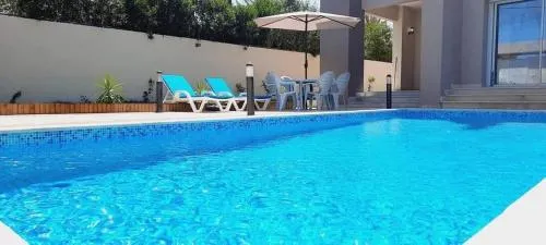 Tämä majoituspaikka on listattu huvilaksi ja siinä on ulkouima-allas, mikä osoittaa yksityisen uimamahdollisuuden saatavuuden.